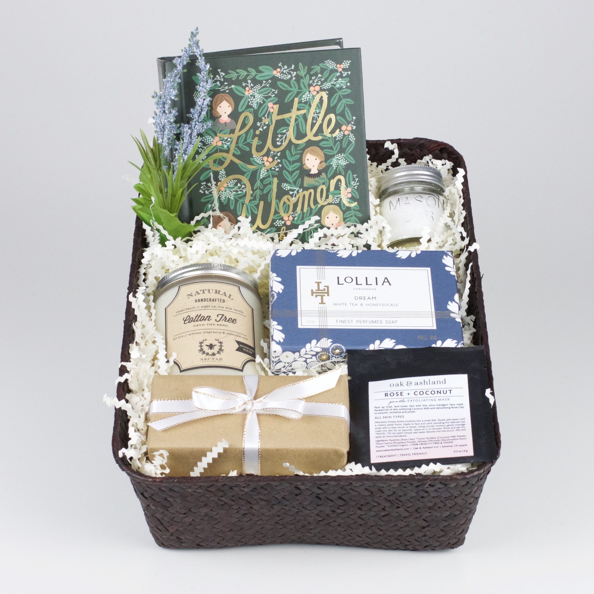 Includes: Lollia Relax bath salt sachet, Nectar Republic candle, Oak and Ashland exfoliating mask, toffee and black forest caramels, a small mason jar full of bath salts and a classic novel by Rifle Paper Co. Titles can include Little Women, Anne of Green Gables, A Little Princess or Heidi. Please note which title you would like in the comments section when you review your order!